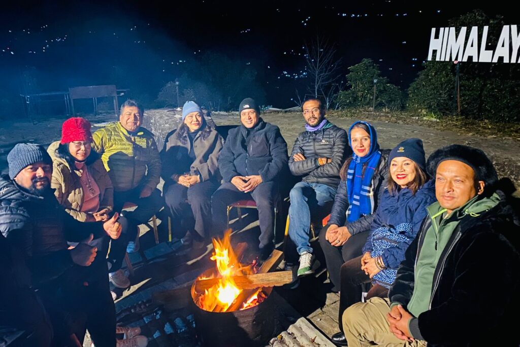 रोटेरियन साथीहरू महेश बज्राचार्य, सुबाष सिग्देल र बिनिता प्रधान त ठ्याक्कै मिथुन चक्रवर्तीझैं ठुम्का लगाउँदै नाचिरहेका थिए। बाँकी सबै ताली बजाउँदै, हुटिङ गर्दै रमाइरहेका थिए। साँझको यो माहोल साँच्चै अविस्मरणीय थियो। हिमालको काखमा आगो, सङ्गीत, नाच र साथीहरूको हाँसो।