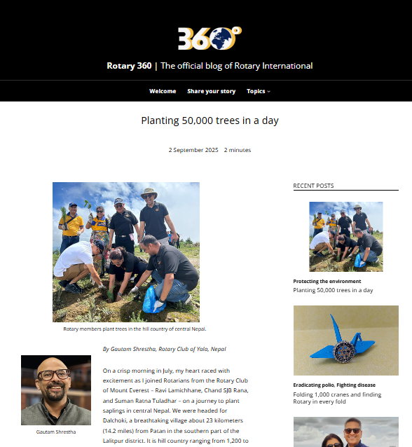 Planting 50,000 Trees in a Day” from the Rotary 360 blog post published on September 2, 2025