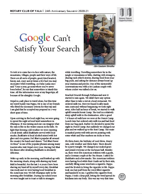 “Google can’t satisfy your search” article published by Rotary Club of Matribhumi Baluwatar on July 2025