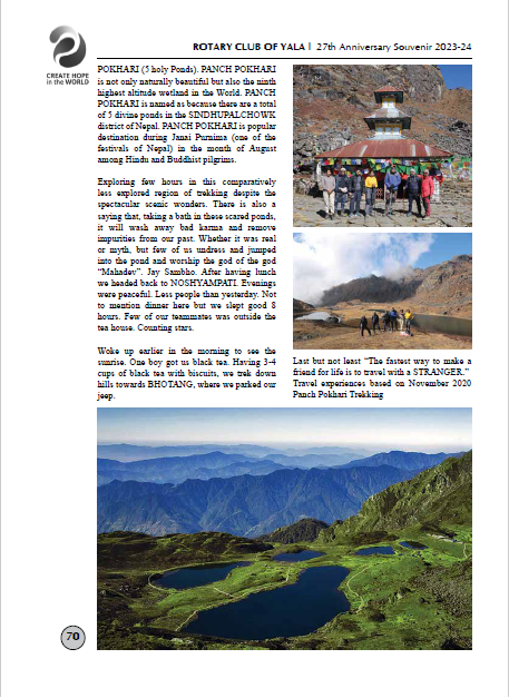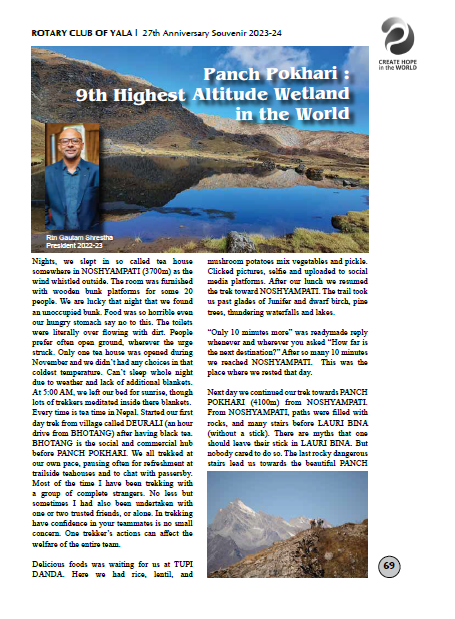“Panch Pokhari: 9th Highest Altitude Wetland in the World” published by Rotary Club of Yala in July 2023