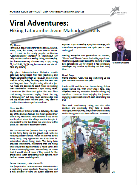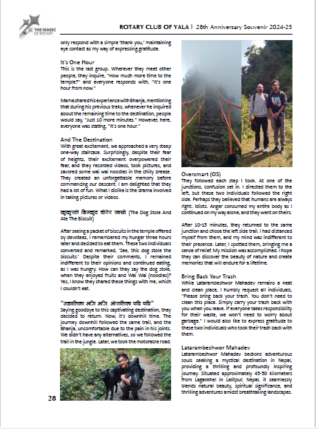 “Viral Adventures: Hiking Latarambeshwor Mahadev’s Trails” published by Rotary Club of Yala in July 2024