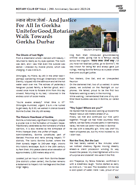 “And Justice For All In Gorkha” article published by Rotary Club of Yala in July 2025
