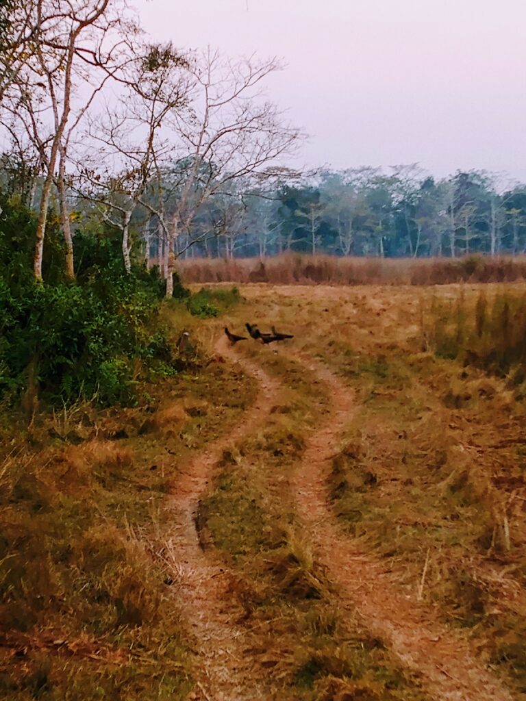 हामी गैंडाको खोजीमा थियौं, त्यसको भव्य उपस्थिति हेर्न आतुर। घना जंगलमा मयूर, चराहरू र अन्य वन्यजन्तुहरू देख्यौं, तर दुई घण्टा खोज्दा पनि गैंडा भेटिएन।