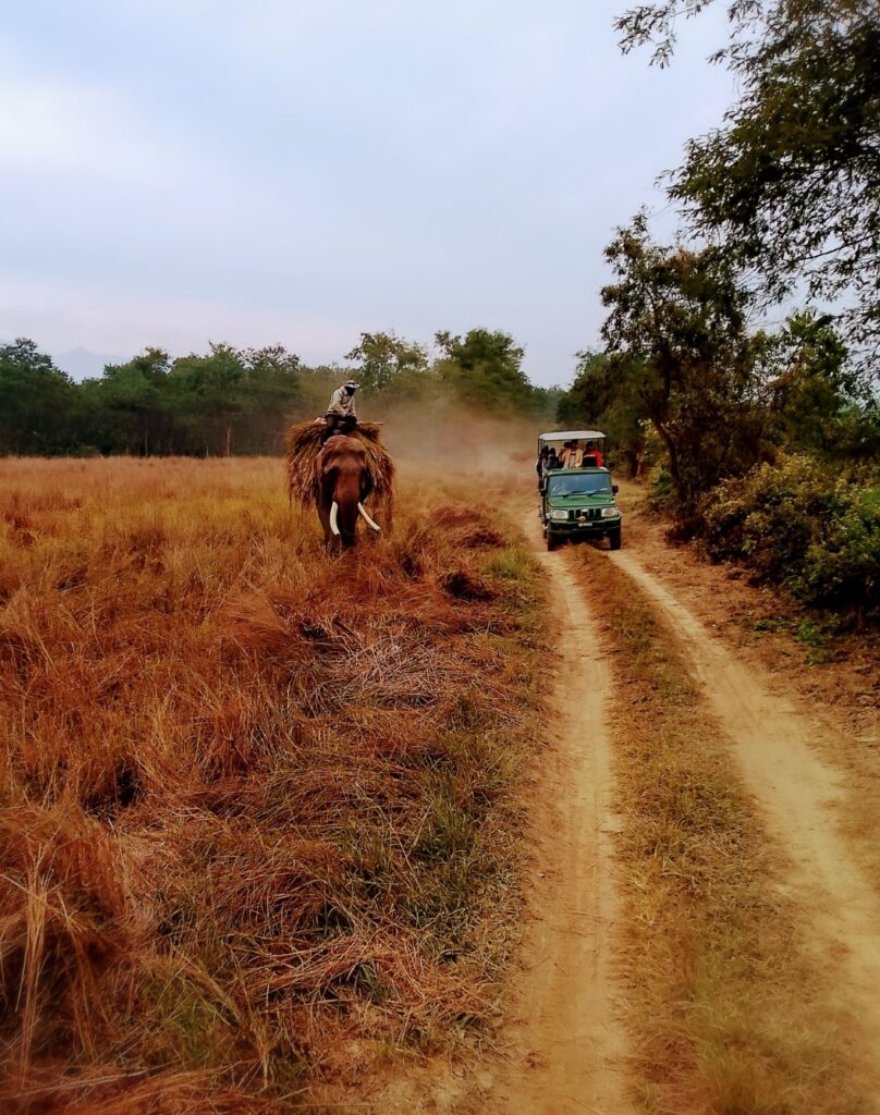 हाम्रो लक्ष्य गैंडा देख्नु थियो, र हामी सबै उत्साहले भरिएका थियौं। ड्राइभरले जीप बिस्तारै चलाए, र गाइडले हामीलाई चुप लाग्न आग्रह गरे। र केही समय आफ्नो लेक्चर दिए, नियम र कानुनको बारेमा, लाग्थ्यो शाहरुख खानले ‘चक दे इन्डिया’ फिल्ममा आफ्नो टिमलाई दिएको जस्तै। हामी पनि सबै “राम इज गुड ब्वाय” जसरी सुनिरहेका थियौं।